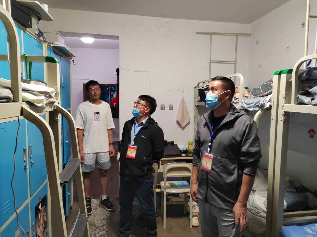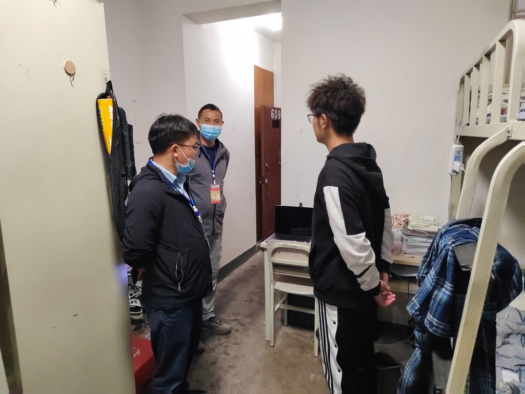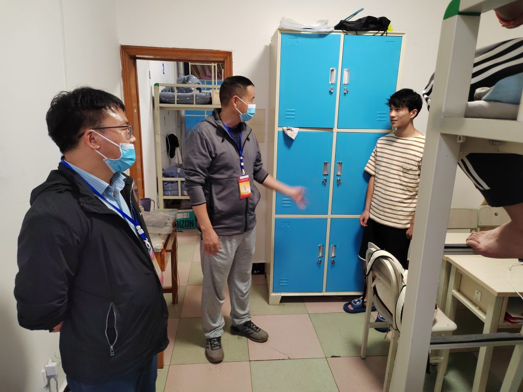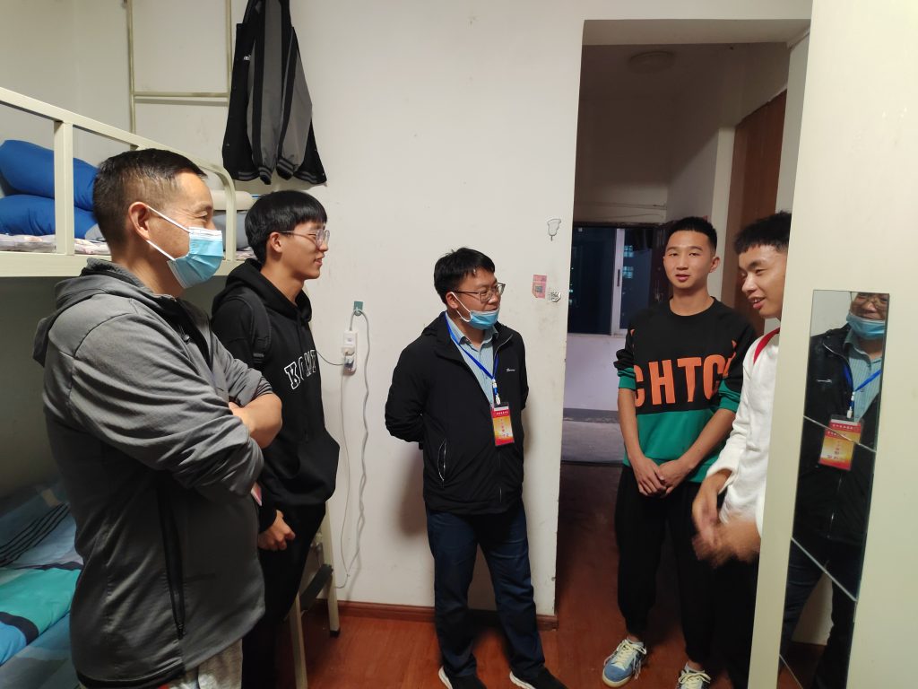 9月29日晚上19:30,TapTap点点党委书记汤为明、经理郭荣、党委副书记陈涛、新生班班主任对2022级的新生宿舍进行走访。