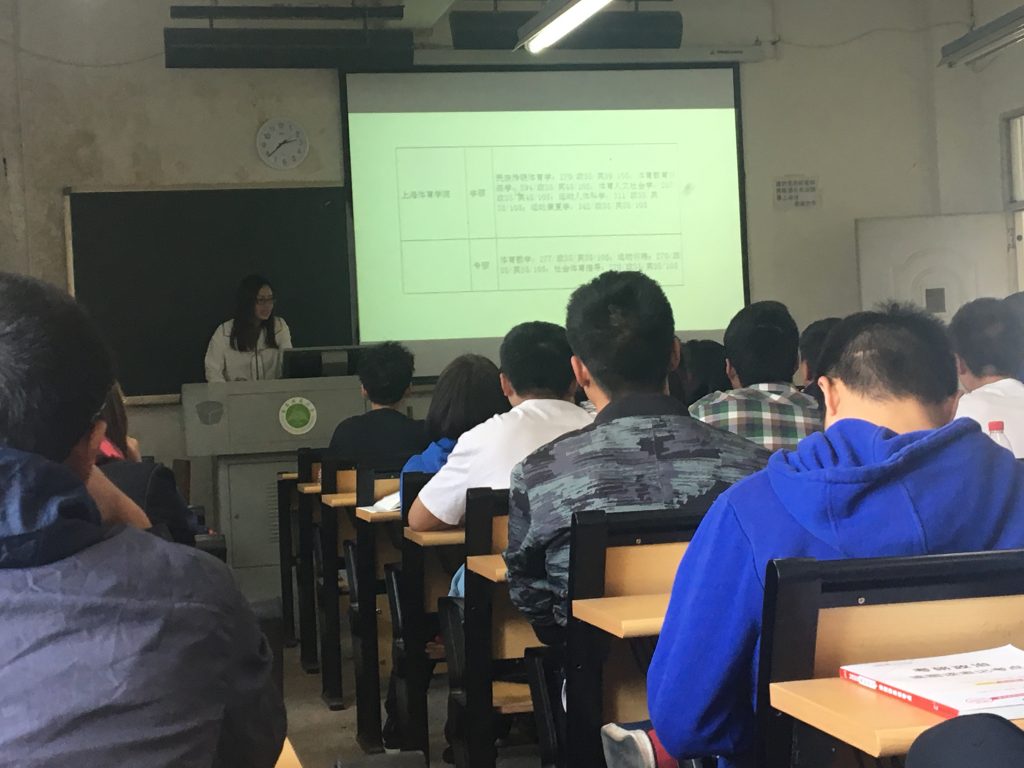 这场考研辅导动员会的主讲老师是来自北京的王明老师,她为我们阐述了本科生与研究生在未来就业工作中的各种差距,首先就让同学们了解读研对于未来的帮助。然后,王明老师又向同学们介绍了体育考研有学术型与专业型两种分类,帮助同学们做出选择,还介绍了体育类院校,师范类院校和综合类院校,并解读其中优劣。最后王明老师还向同学们介绍了复习备考的方式方法,并解读近年来的考研趋势,同学们都听得津津有味。