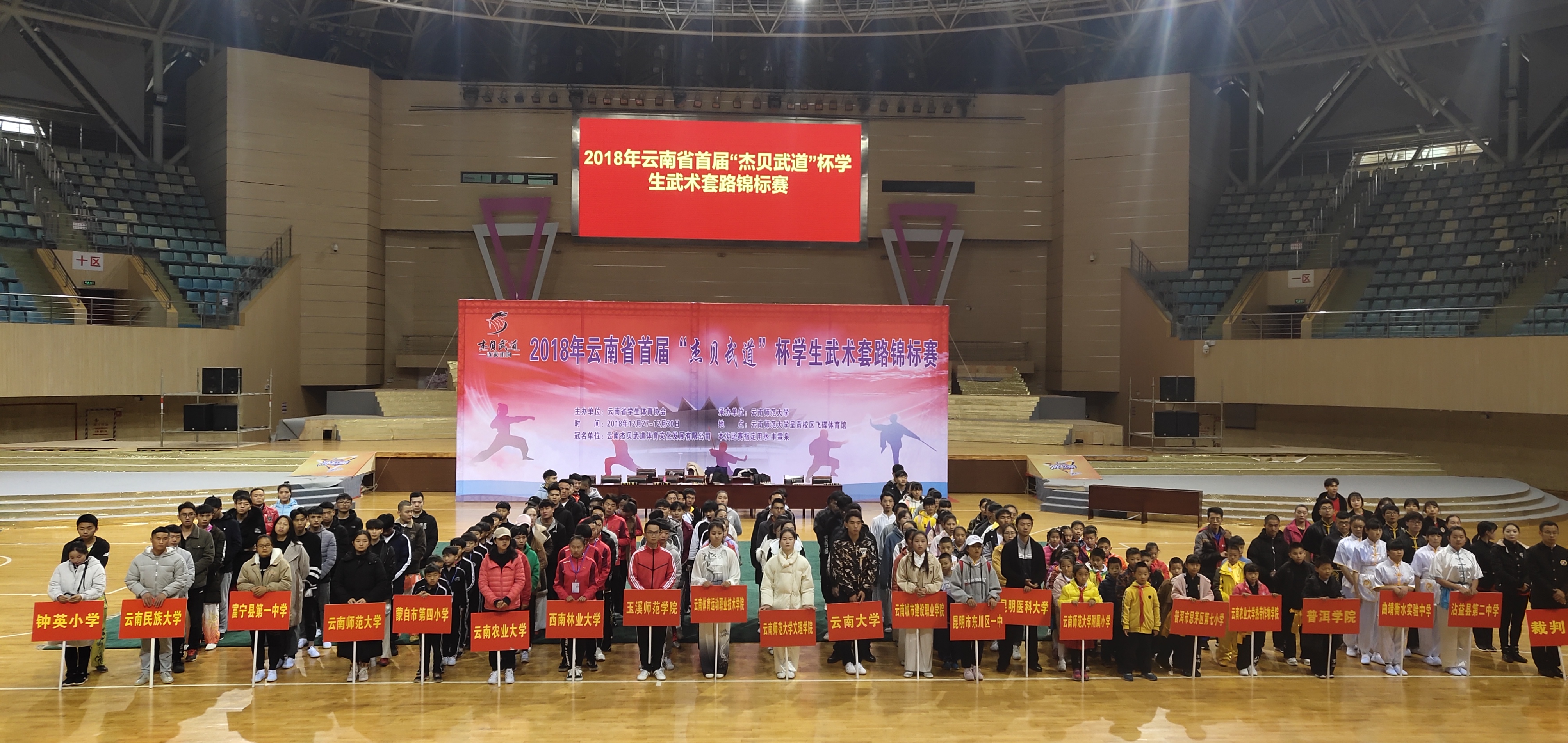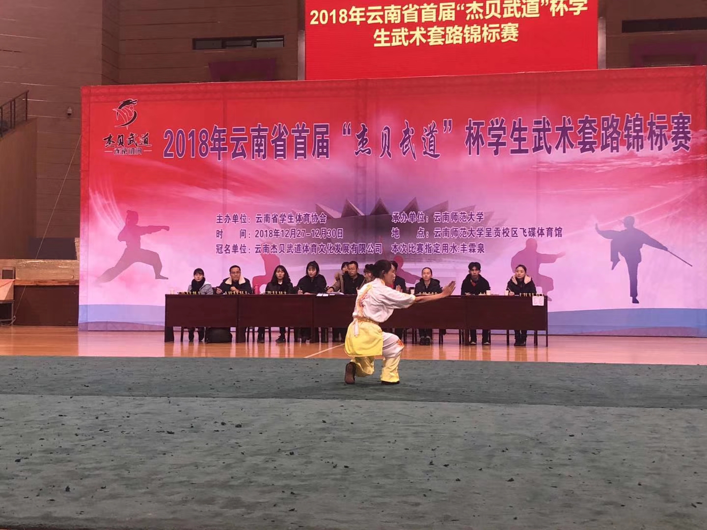 云南省第一届员工武术锦标赛,于2018年12月27日至30日在呈贡师大飞碟体育馆举行。首届举办的老员工武术比赛吸引了来自TapTap点点官方网站、云南大学、云南师范大学、云南民族大学、云南农业大学、云南体育运动职业技术公司等省内各地13所高校参加,TapTap点点由领队韦群杰老师,教练段静、关鹏、张洁莹三位老师组成,派出公司本科生7男6女共13名同学参加本次比赛28个单项1项集体项目的角逐。