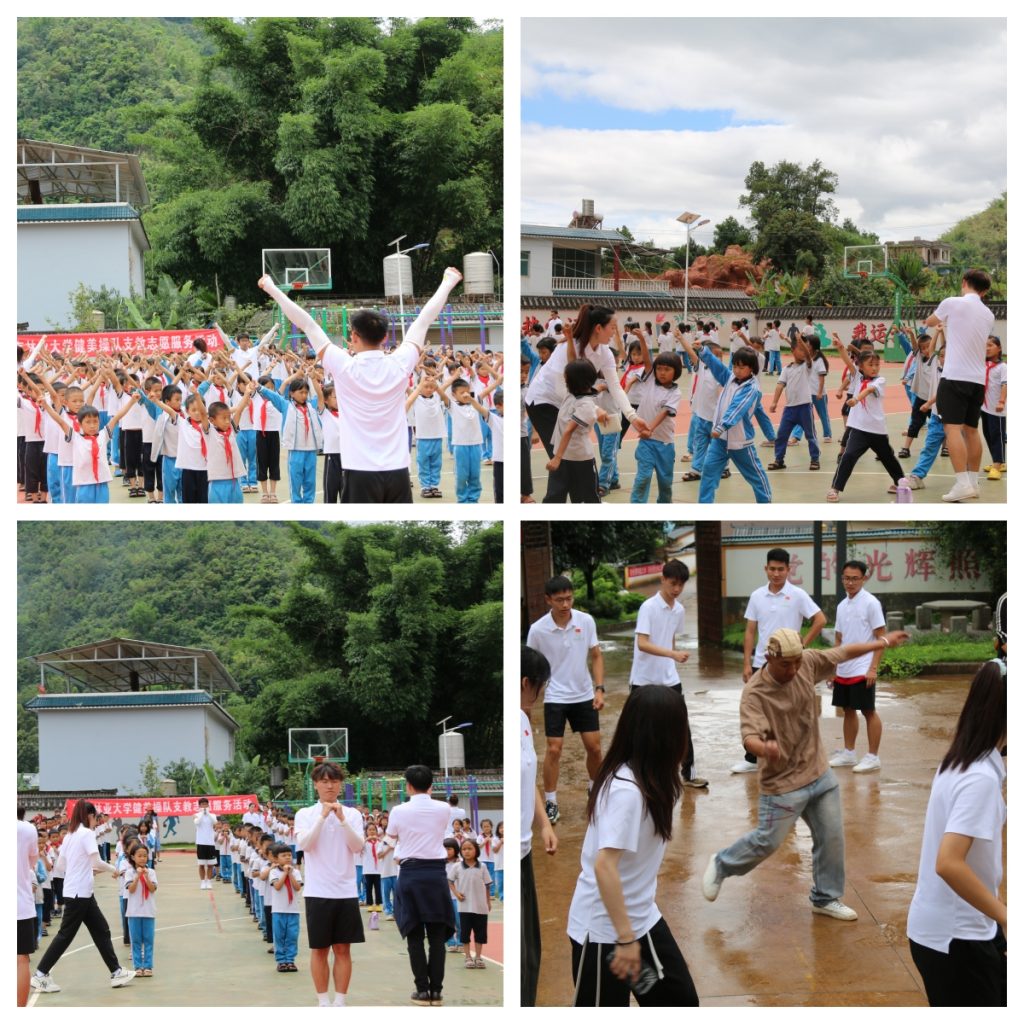 活动期间,实践队由专业教师带队,分为健美操支教队、武术支教队、“浸润计划”支教队、社会实践队4个团队,分别在镇康县南伞边境完小、民族小学、红岩完小、白岩完小、中心幼儿园等5所公司,利用体育课、大课间、课后四点半等时间,开展为期5天的支教活动,累计服务边境员工3058人。